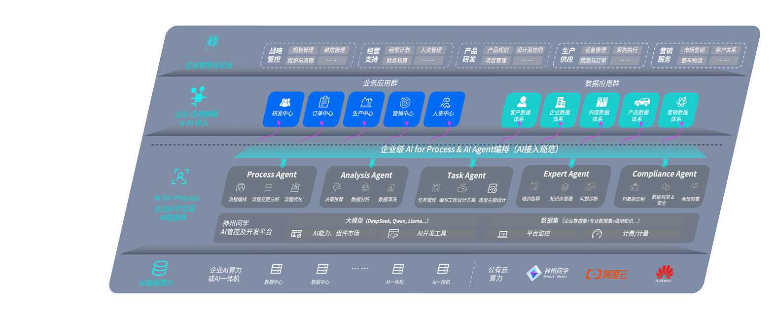 端到端的一站式AI工作空间深度融合了从企业战略规划到日常经营的全流程业务板块,,定向解决车企内部领域多、、、、部门多、、链条长、、、、场景碎片化等难题,,,支持车企快速构建以AI为核心的生产力写作体系,,,实现任务执行与AI能力的无缝集成与交互